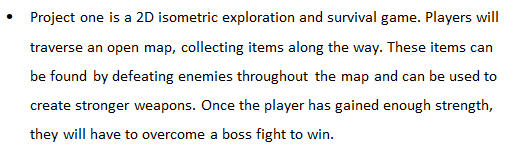 As the game was our senior group project, the initial design concepts were collaborative. After prototyping, we had a more general sense of the kind of game we wanted to make - a 2D action game - a few of us started to put together more concrete proposals of games. We pitched these concepts to each other and then voted on which project to pursue for the remainder of the school year.My first concept for Hunting the Aurora focused on exploration and gathering resources by defeating enemies.